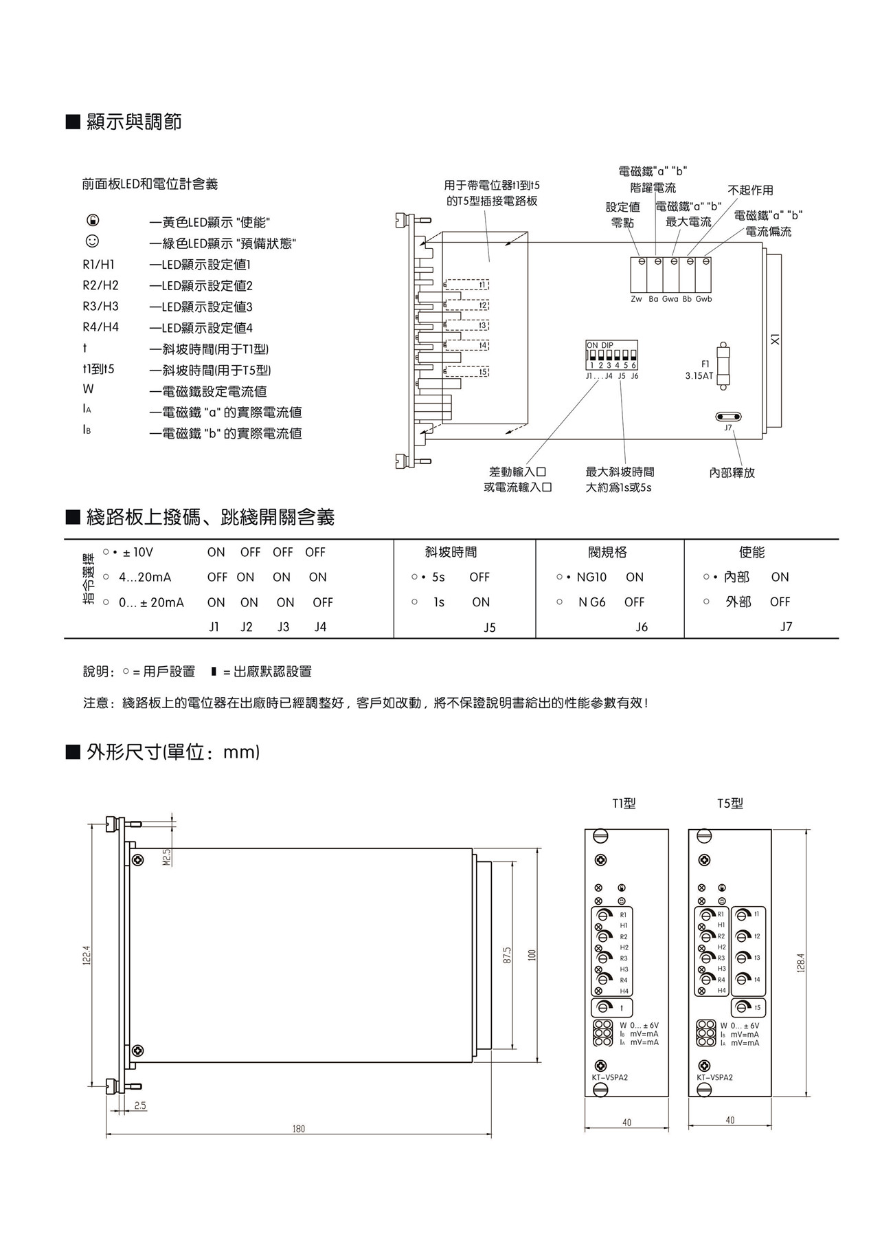 ● 帶有1個斜坡時間調(diào)節(jié)電位計 (對T1型) 或5個斜坡時間調(diào)節(jié)