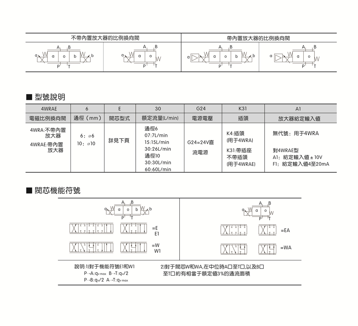 ● 4WRAE:帶集成式放大器 , 可與歐美同類型產(chǎn)品互換。