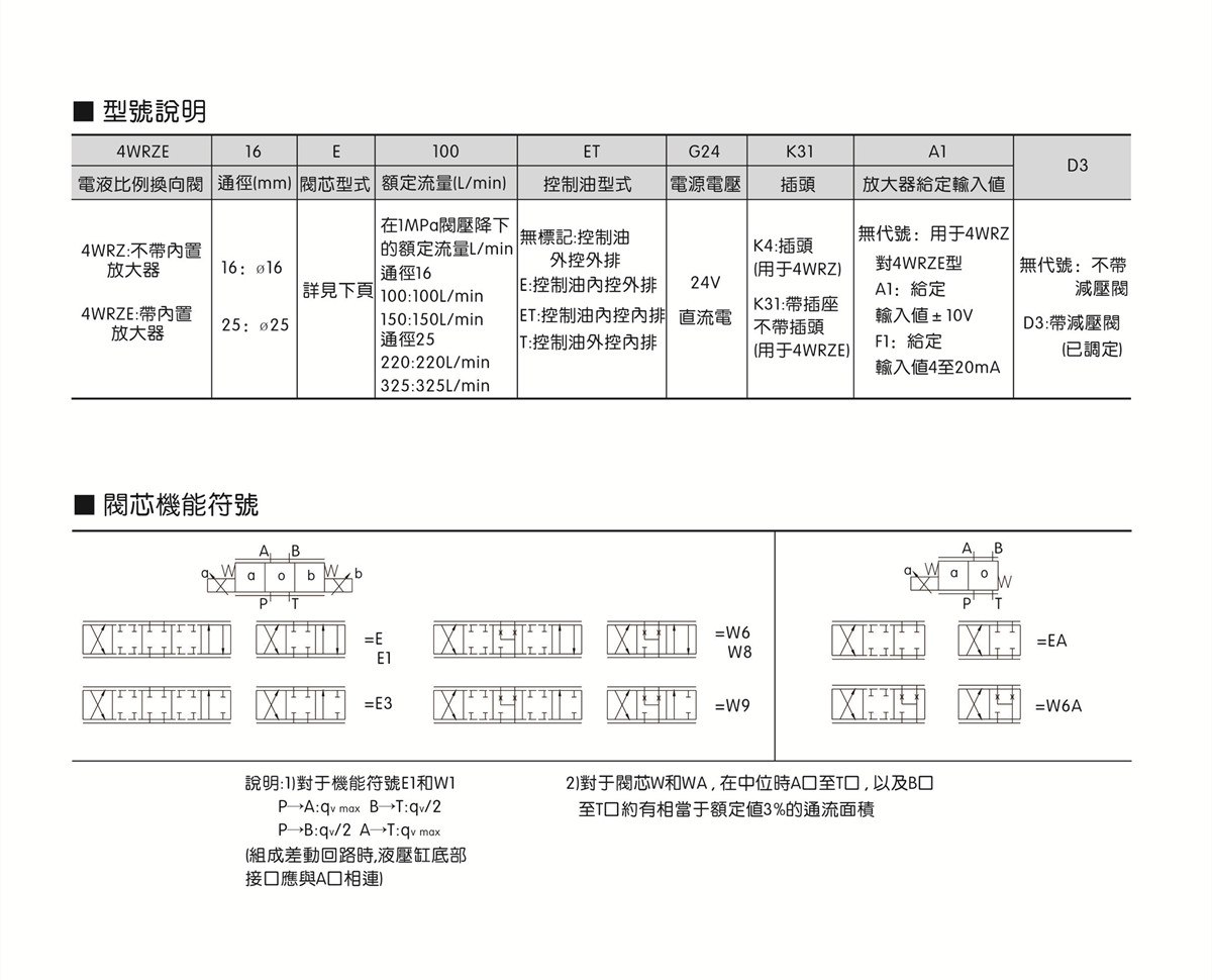 ● 4WRZE: 帶集成式放大器 , 可與歐美同類型產(chǎn)品互換。