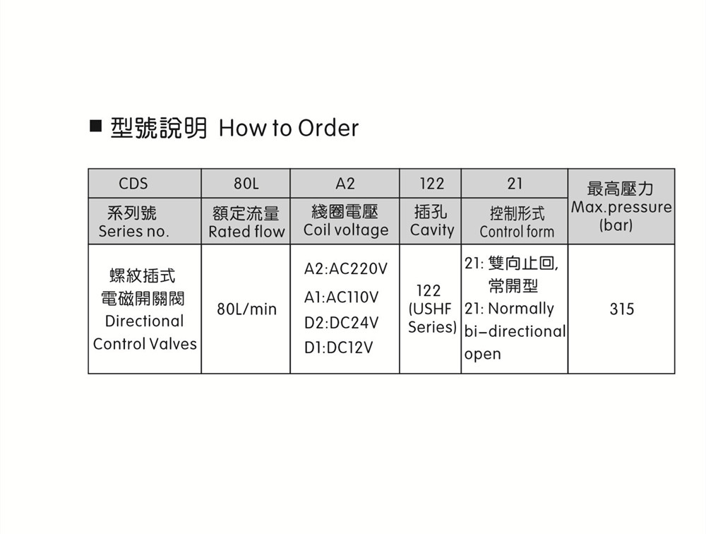 后 , 此閥截止油液雙向流動。* 額定流量:80L/miin