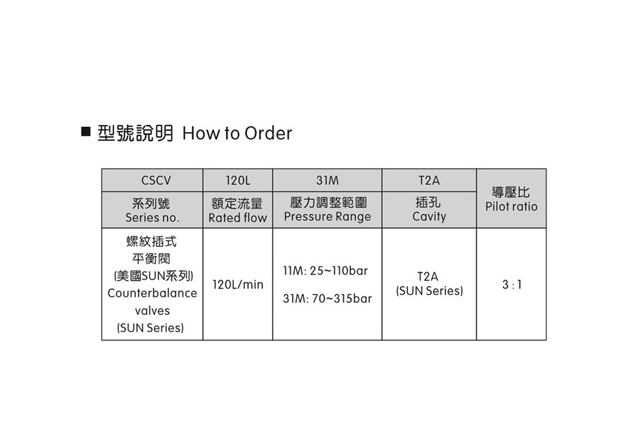 * 可控制油缸逆向背壓, 防止油
