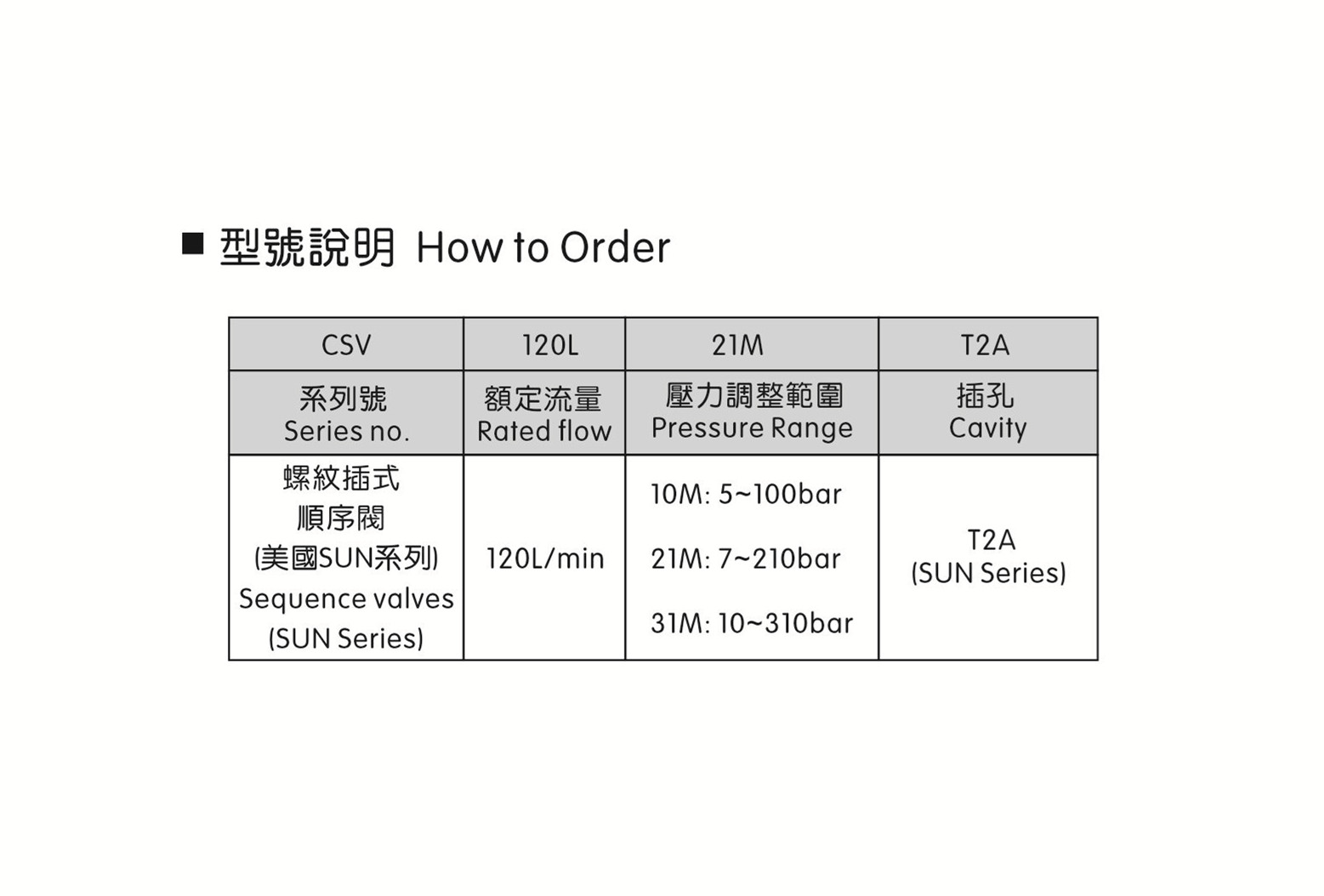 螺紋插裝式順序閥 CSV-120L-10M-T2A